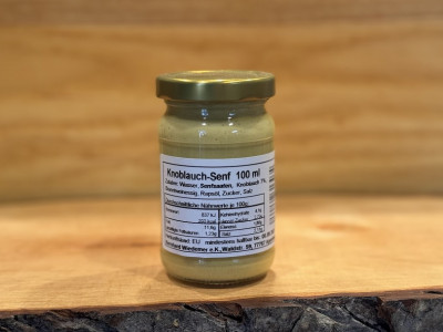 Dieser Knoblauch-Senf bringt eine klare, würzige Note an Fleisch, Dips und Brotzeit. Der Anteil an frischem Knoblauch sorgt für ein kräftiges Aroma. Ideal für Marinaden und Grillgerichte.
